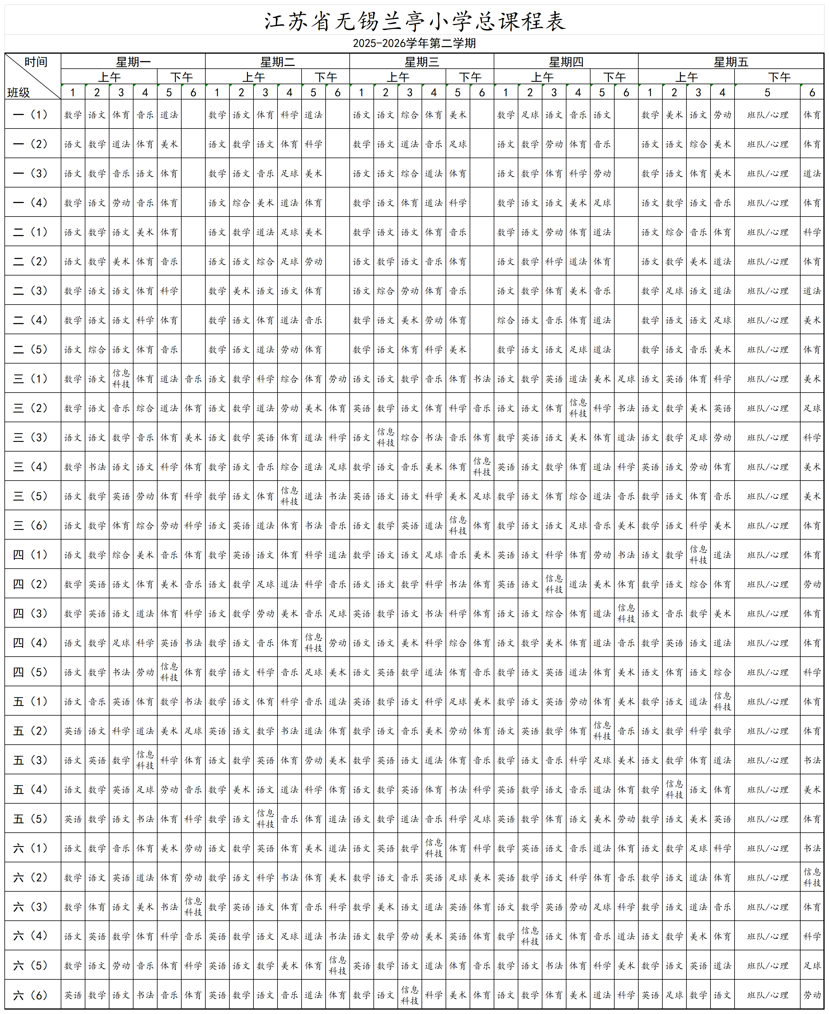 2025-2026学年第二学期总课表